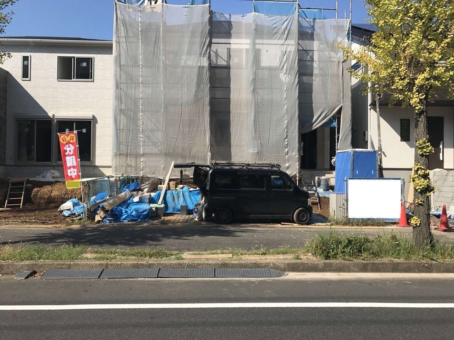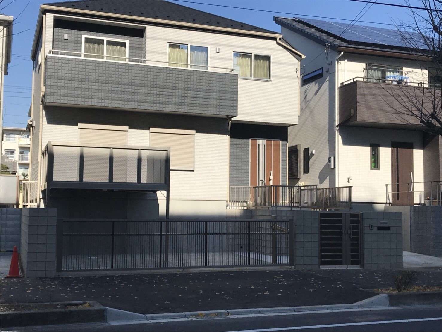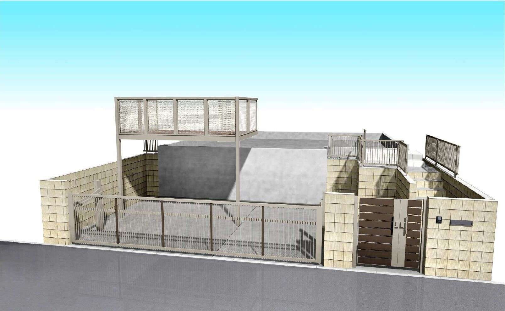 乱形石貼り バイク用ガレージ カーポート タイル造作門袖 宅配ボックス 各種照明工事